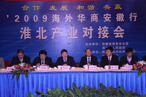 中新網12月10日電 據國僑辦網站消息,12月5-6日,由安徽省僑辦和淮北市政府共同主辦、國務院僑辦經濟科技司支持的“2009海外華商安徽行暨淮北產業對接會”在淮北市舉行。國僑辦副主任任啟亮、安徽省副省長文海英以及淮北市委書記畢美家出席活動并講話。50多位海外僑商以及淮北市委、市政府相關部門負責人參加了活動。