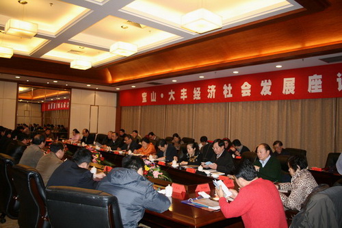 隨后,考察團一行與大豐市委、市政府進行了“寶山、大豐經濟社會發展座談會”。大豐市委書記倪峰等出席活動并向考察團介紹了大豐市、大豐工業園區、經濟開發區及大豐港的情況,誠摯邀請寶山臺資、僑資企業家到大豐創業發展。