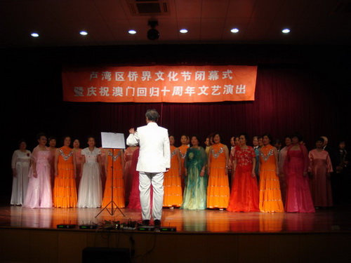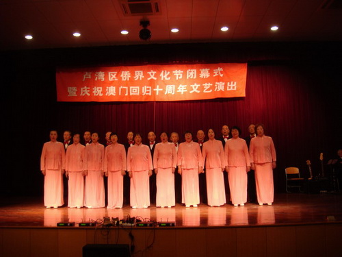 一首優美動聽的《七子之歌—澳門》拉開了盧灣區僑界文化節閉幕式暨慶祝澳門回歸十周年文藝演出的序幕,來自區內僑界親情中華藝術團、五里社區、打浦社區、SUNDAY合唱團的各種歌曲、大合唱、時裝表演、器樂演奏、上海說唱等節目你方唱罷我登場,充分展示了盧灣區僑界文化節活動的豐富多彩,充分展示了盧灣區僑界群眾的良好風貌。