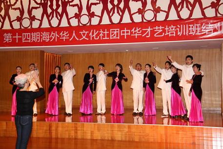 據(jù)介紹,深圳華夏藝術中心自2002年12月3日承辦第一期“中華才藝培訓班”至今,已先后承辦了十期,60多個國家的600余學員在此接受過培訓。為使學員們能將專業(yè)知識較為完整的帶回去鞏固和傳播,華夏藝術中心此次還專門編寫了舞蹈、聲樂教材。“海外華人文化社團中華才藝培訓班”的舉辦不僅為海外華社培訓了一批高質量的才藝骨干,更豐富了當?shù)厝A僑華人的文化生活,并成為中國開展海外文化交流活動的重要內(nèi)容之一。在當天舉行的結業(yè)典禮上,學員們還展示了一系列他們所學的傳統(tǒng)中華民族舞蹈和聲樂表演,匯報18天來的學習成果。(張平和)