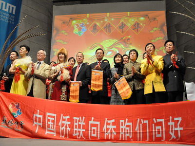 中新網1月6日電 據中國外交部網站消息,2010年1月3日晚,中國僑聯組織的“親情中華”藝術團歐洲之行首場演出在德國慕尼黑舉行。慕尼黑總領事馬晉生和夫人劉霞、領館館員及慕尼黑工業大學副校長孟麗秋、巴州華商會、僑學界、中資機構和一些德國友人約800人觀看演出。
