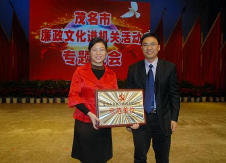 中新網1月20日電 據茂名外僑局消息,1月18日,由廣東省茂名市紀委、市直工委主辦的茂名市廉政文化進機關活動專題晚會在茂名影劇院隆重舉行,廣東省紀委領導及茂名市領導出席了晚會。晚會表彰了“十佳廉政文化理念”以及“廉政文化建設示范單位”,茂名市外事僑務局被評為茂名市“廉政文化建設示范單位”。