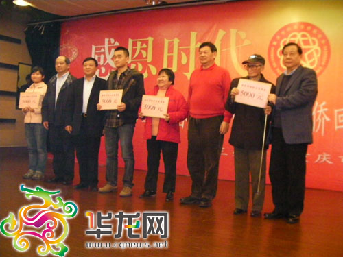 在上午的活動中,家住重慶萬盛區的歸僑僑眷陽光,從重慶市僑聯領導手中,接過了5000元的特困助僑關愛基金。除此之外,還有來自沙坪壩、榮昌、大渡口3位特困僑眷,每人也分別獲得了5000元的助僑關愛基金。