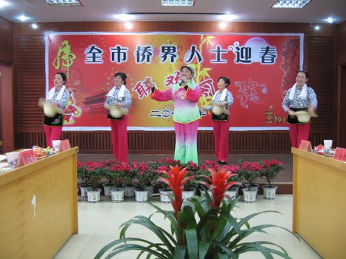 聯(lián)歡會(huì)上,歸僑僑眷和僑務(wù)干部們自編自演,用歌曲、舞蹈等多種形式表達(dá)新春來臨的喜悅心情。