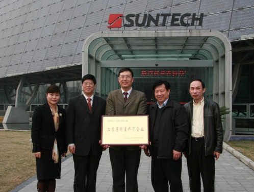 在無(wú)錫尚德太陽(yáng)能電力有限公司,錢(qián)興榮一行聽(tīng)取了該公司以及施正榮博士創(chuàng)業(yè)發(fā)展情況的介紹,并向公司頒發(fā)了國(guó)務(wù)院僑務(wù)辦公室授予的“全國(guó)百家明星僑資企業(yè)”獎(jiǎng)牌和省僑辦授予的“江蘇省明星僑資企業(yè)”獎(jiǎng)牌。