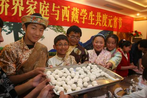 中新網3月3日電 據南通市僑聯消息,2月28日,與江蘇省南通市僑界家庭結對的50名藏族孩子全部“回家”與“親人”共度元宵佳節。
