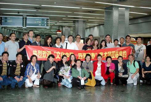 中新網(wǎng)3月5日電 據(jù)巴西《南美僑報》報道,“文化中國·四海同春”赴南美藝術團3日晚間平安抵達本次訪演的最后一個城市——巴西里約熱內(nèi)盧,在當?shù)貒H機場受到了里約華僑華人的熱烈歡迎,國僑辦副主任馬儒沛和藝術團的演員們與僑胞們在機場合影留念。