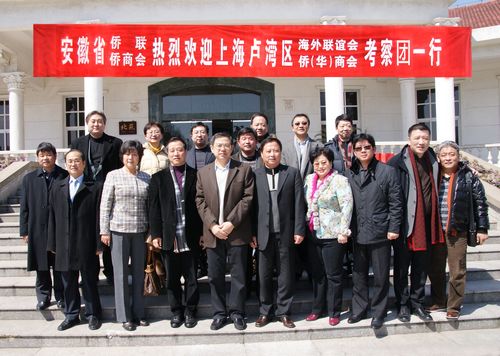 中新網3月12日電 據安徽省僑聯消息,近日,上海市盧灣區海外聯誼會副會長王海銀、盧灣區僑(華)商會會長李飛康一行9人赴安徽省考察調研經濟社會發展及城市建設情況。