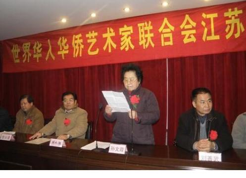 62歲的月牙湖書畫研究會會長孫文霞當(dāng)選為江蘇分會主席。她在會上表示:協(xié)會的成立除旨在切磋交流書畫技術(shù),搭好藝術(shù)友誼橋梁,更重要的是繼承中華民族優(yōu)秀傳統(tǒng),弘揚(yáng)中華民族精神,為構(gòu)建和諧社會,維護(hù)世界和平,做出應(yīng)有的貢獻(xiàn)。