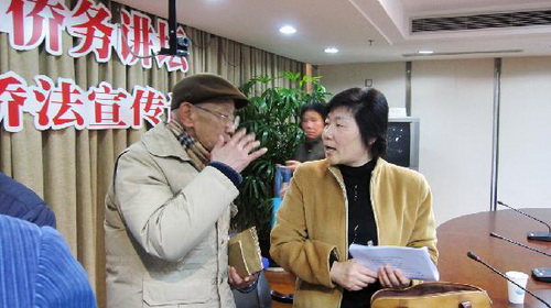 其中涉及的法規(guī)和政策都是與廣大歸僑僑眷切身利益密切相關(guān)的,在一個半小時的講座中,大家認真聽講,收獲良多。會后,王玲鼓勵每一位歸僑僑眷合法、合理地用好、維護好自己的權(quán)益,并且希望僑務(wù)干部們廣聽各方意見、積極建言獻策,為修訂、完善僑法出謀劃策。