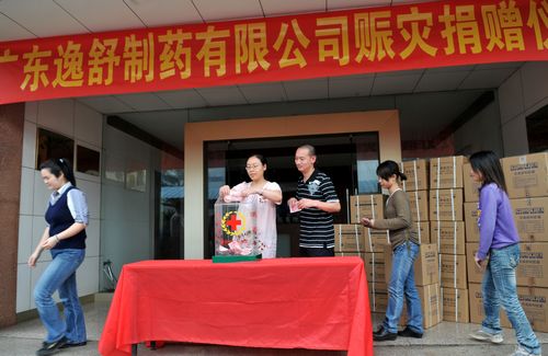 廣東逸舒制藥有限公司董事長黃慶文出差在外,當他接到市僑聯的倡議后,第一時間表達了向玉樹災區捐款捐物的意愿。他急災區群眾之所急,立即組織企業員工加班加點,加量生產大批災區急需的抗生素等藥品,并特地委托公司總經理黃慶雄參加捐贈儀式捐贈藥品。儀式上,肇慶市僑聯主席黃志堅向廣東逸舒制藥有限公司及其全體員工對積極參與捐贈活動表示衷心的感謝;他指出,災害無情,人間有愛,我們雖遠離玉樹,但與災區人民感同身受,此刻奉獻一份愛心,盡一份綿薄之力是我們情系災區最好的表達方式。隨后,黃慶雄總經理代表公司把藥品和善款親自交到市紅十字會主任徐永飛手中,為感謝廣東逸舒制藥有限公司的善舉,市紅十字會也回贈了“紅十字愛心單位”牌匾。