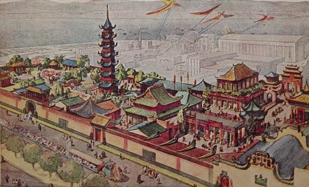 根據有關資料,“中國村”入口大門是一座巨大的牌坊,上面書寫著“華商展覽場”幾個大字。“中國村”內設有兩個酒家、兩座戲院、一座神廟和一座七層高的佛塔。“佛塔是中國村內最高建筑。”喬文安介紹,“中國村”內還建了一個陳列館和一二十家商店,分別展出中國的各類民間工藝品、瓷器、茶葉,還有少量具備科技含量的產品。