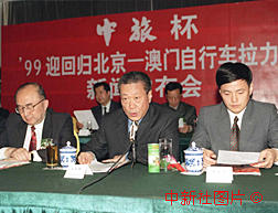 被列入慶祝澳門回歸祖國正式慶典活動之一的"中旅杯九九迎回歸北京至澳門自行車拉力賽"十四日在北京舉行新聞發布會:屆時將有來自全國各省市及香港、澳門的十二支代表隊共七十二名運動員參加這一中國有史以來規模最大、水平最高、距離最長的比賽。