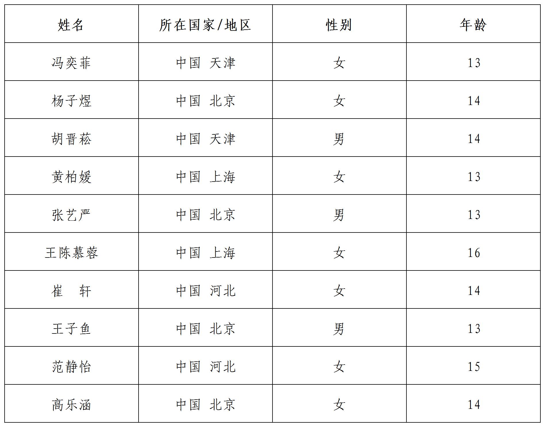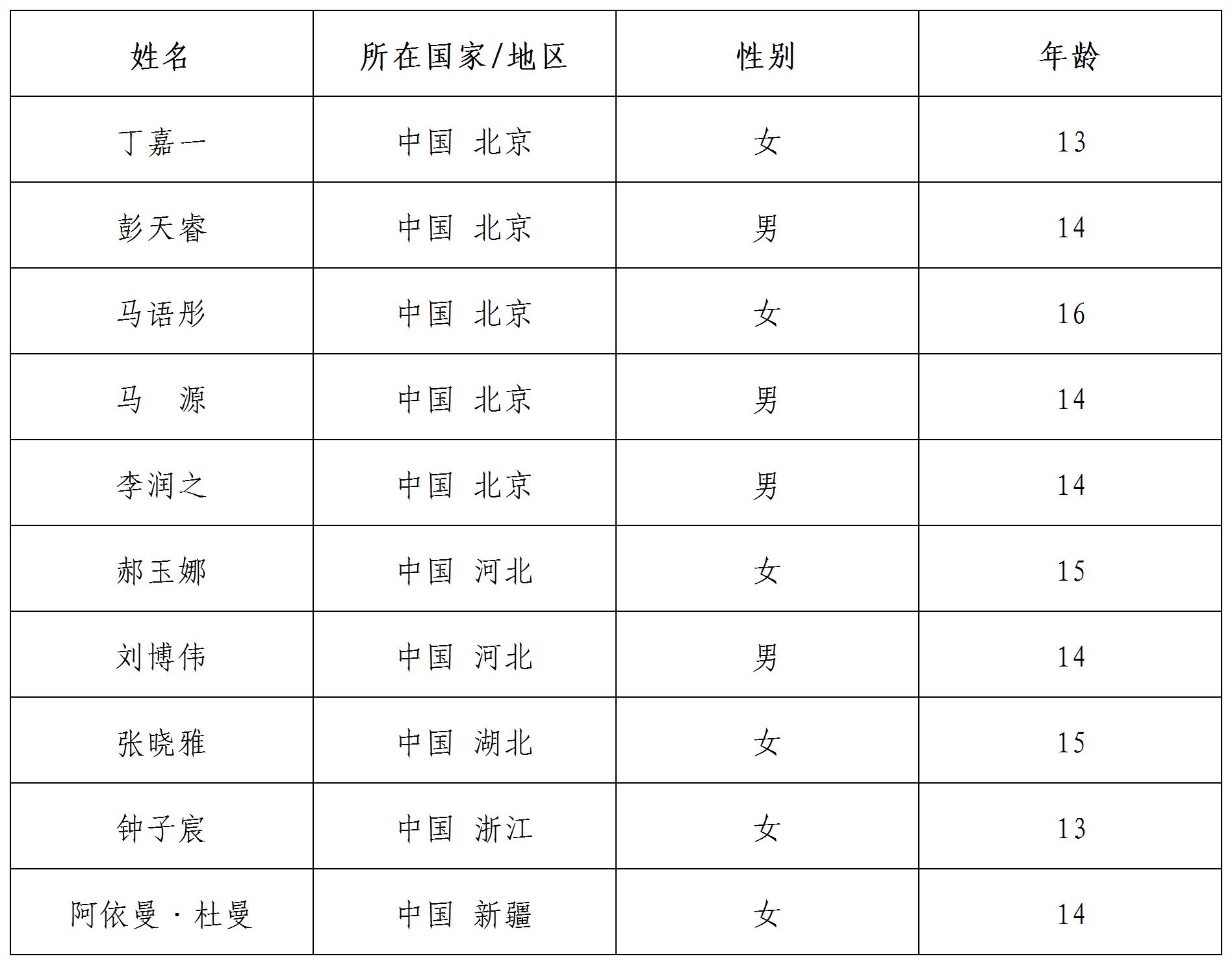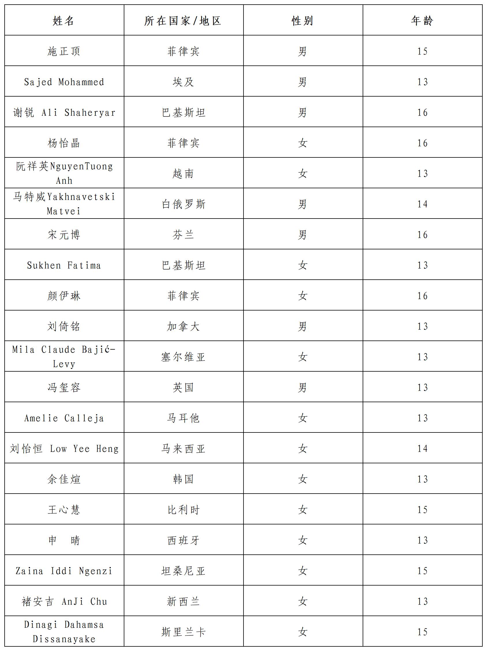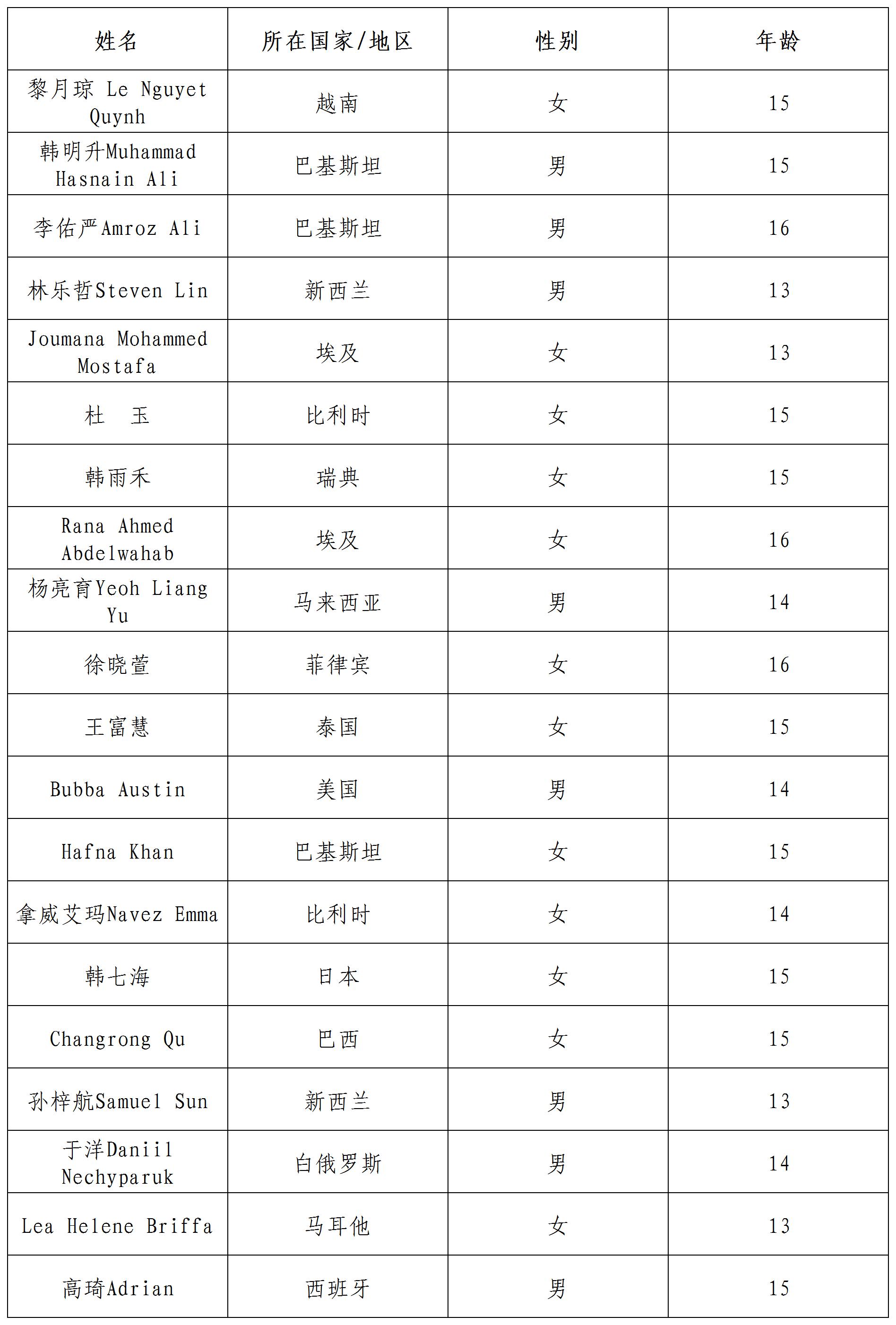 公示時間:即日起至2022年2月1日北京時間24:00 咨詢方式: 郵箱:yszxhd@sclc2017.org 聯系電話:15810563423 如有異議,請于公示期間致電或郵件咨詢。本活動最終解釋權歸中國宋慶齡青少年科技文化交流中心所有。 備注:標注國家以參與者報名時駐在國為準。