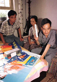 “法輪功”練功者的醒悟(一) ![]() 7月23日,石家莊市棉紡六廠退休工人孫金銘(右)在老伴伊素梅的陪同下,主動(dòng)將家里有關(guān)“法輪功”的書(shū) 籍、掛圖及錄音帶等交到家委會(huì)。孫金銘三年前因患糖尿病、腎病而開(kāi)始練“法輪功”后,拒絕醫(yī)生的診治和服藥,身體日漸 消瘦,他老伴只好將藥物攙到飲料中哄著他喝下去,才勉強(qiáng)維持到今天。孫金銘連續(xù)三遍收看中央關(guān)于取締“法輪功”的決定 和李洪志真相的報(bào)道后,明白了“法輪功”是歪理邪說(shuō)。新華社記者周文廣攝(傳真照片) |