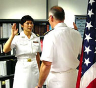 圖文:華人翁正欣將出任美太平洋司令部發言人 2001年6月4日 08:23 ![]() 中新網香港6月4日消息:幼年時自臺灣移民美國的現役美國海軍少校翁正欣,7月起將出任太平洋美軍司令部的新聞官。 據“中央社”報道,翁正欣生于云林水林鄉,7歲隨父母移民美國。她說,她很高興到夏威夷任職,因為她的親戚都住在臺灣,而夏威夷離臺灣比較近。她十年前從美國海軍官校畢業,今天晉升少校,同時領取華府天主教大學的政治學碩士學位。 翁正欣目前在五角大廈任職,職務是海軍新聞官。 她的父親翁義雄說,正欣選擇從軍,是因為他和太太以前在假日常到海軍官校所在地馬里蘭州安納波利斯,太太羨慕官校女生穿著白色制服非常帥氣的樣子,正欣便決定效法,進入海官就讀。翁義雄目前在馬里蘭州政府衛生局任職。 翁正欣說,當時從臺灣移民美國很不容易,她自認能在美國成長非常幸運,而選擇從軍部份是想要報效這個國家。她的丈夫約翰·桑默是她在官校的學長。 |