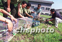 圖:北京放生麻雀 2001年08月24日 20:15 ![]() 二十四日,北京市林政稽查大隊在京郊森林公園放生五百多只麻雀,這些麻雀是昨日在鳥市稽查救回的。中國目前已加大對各種野生動物的保護力度,于去年八月立法規定:捕殺、出售、食用麻雀已屬違法。中新社記者 張宇 攝