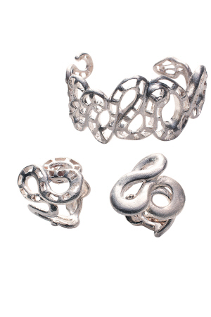 今季的首飾作品,也嘗試用圖案和符號(hào)重現(xiàn)這種魔力。如用精貴青銅鏈子上的原創(chuàng)不對稱圓形設(shè)計(jì),同天然木材和新奇式樣形成的樸實(shí)色調(diào)結(jié)合在一起,形成帶有魔力保護(hù)色彩的“眼睛”符號(hào);又如用純銀和青銅造型與皮革、石頭組合在一起表現(xiàn)自然界。另外,“蛇”形也大量被運(yùn)用在此系列中,創(chuàng)造“糾纏不清”的超長項(xiàng)鏈、神秘的手鐲及超大戒指。(來源:信息時(shí)報(bào);作者:裴靜怡)