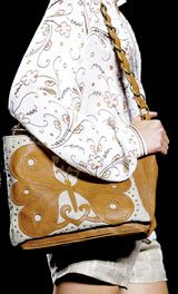 蝴蝶已經以驚艷的名義在時尚界飛舞了很多年,今年該重返最本色的蝴蝶原型了。或者你覺得蝶戀花的主題很土,但是今年就是時興這個。絲巾、面料、帽子、手袋甚至連手表都布滿了蝴蝶與鮮花的圖案,而且沒有太多藝術加工,就是上世紀80年代那種萬紫千紅的本色。最近梵克雅寶推出的百年紀念腕表LadyArpelsCentenary系列,表盤上有花朵、葉子、蝴蝶和蜻蜓組成的風景畫。而瑪麗亞·古琦本季有一款剛上市就售空的絲巾,圖案就是紫色的蝶戀花。從中我們可以明白一個道理:紫色和蝴蝶是今年的熱門,捉一只紫色蝴蝶絕對沒錯。