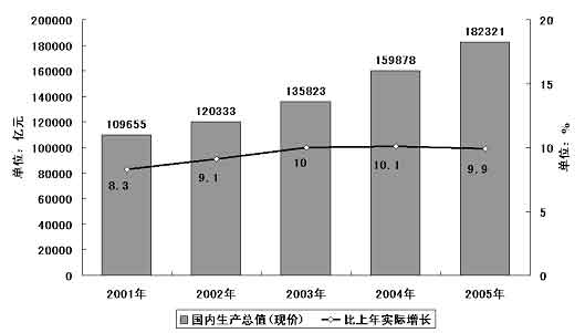 圖表一 “十五”期間國內生產(chǎn)總值及其增長率