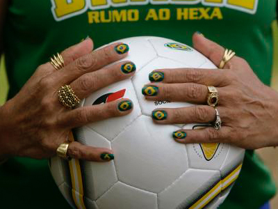 在這個正值世界杯的夏天,看一眼蒼白的指甲,僅僅用單色甲油紅潤氣色已不足以體現情趣和時尚,06初夏指甲流行情報是:把球隊隊旗畫在指甲上。不少美甲小店紛紛一副標價45元的水晶指甲也打出了世界杯的旗號,仔細一看才發現,這水晶指甲的甲面上竟是英格蘭、巴西、法國和意大利球隊的隊旗。店主表示,這是為世界杯特意趕制的,隨著世界杯球賽的推進,店內的甲面將逐漸增加的到32種,以滿足球迷MM們的需要。