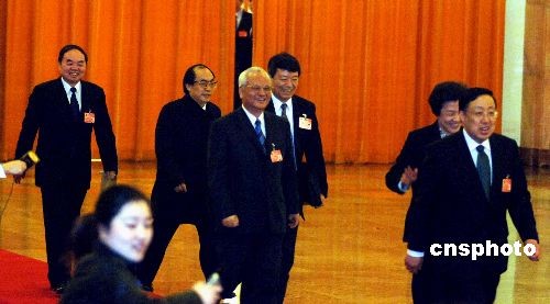 3月17日下午,十一屆全國人大一次會議在北京人民大會堂舉行第七次全體會議,決定國務院副總理、國務委員、各部部長、各委員會主任、中國人民銀行行長、審計署審計長及國務院秘書長人選。會議根據國務院總理溫家寶的提名,決定了國務院各組成部門負責人。中新社發 王東明 攝