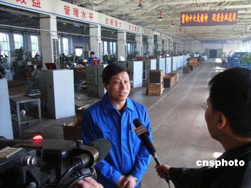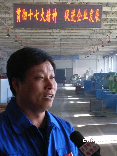 10月22日,齊齊哈爾建華公司黨委書記在接受采訪。當日,中國共產黨第十七屆中央委員會第一次全體會議勝利閉幕。國家老工業基地齊齊哈爾市的產業工人非常高興,中國兵器工業集團公司齊齊哈爾建華公司黨委書記谷云龍代表全體員工表示:堅決擁護十七大的各項決議,擁護新一屆中央領導集體,緊密地團結在黨中央周圍,不斷增強自主創新能力,為國家發展,社會和諧人民進步多做貢獻。中新社發 王云龍 攝