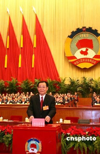 3月13日下午3時,全國政協十一屆一次會議第四次全體會議在北京人民大會堂舉行,會議的主要議程是選舉政協第十一屆全國委員會主席、副主席、秘書長和常務委員。圖為十一屆一次會議主席團常務主席王剛投票。中新社發 盛佳鵬 攝