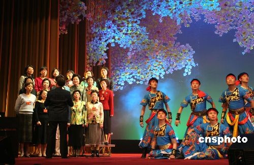 圖為上海全體女代表(左)與藝術界聯袂演唱《天堂》。