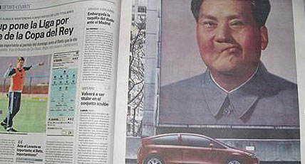 1月8日,西班牙大報之一《國家報》在第15版上刊登一個整版的法國雪鐵龍汽車廣告。廣告畫面是中國已故領袖毛澤東的照片,而且毛澤東的形象被廣告設計者進行了肆意篡改,被電腦技術改得神態奇怪。