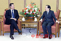 中國國務院副總理錢其琛18日在北京中南海會見前來述職的澳門特別行政區行政長官何厚鏵。中新社記者:毛建軍 攝