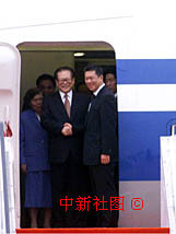 圖文:何厚鏵陪同國家主席江澤民乘專機抵澳
