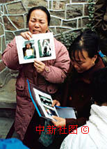 洛陽特大火災遇難者遺體的認領工作28日順利進行。圖為一位剛剛找到兒子遺體的母親痛不欲生地展示兒子生前照片。作者:慎重