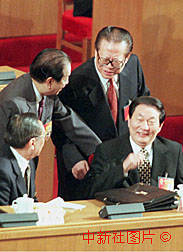 江澤民等在全國人大閉幕會上交談