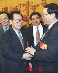 李瑞環與全國人大天津代表暢談天津發展大計 2000年3月7日 08:49 ![]()