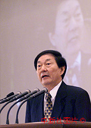 國務(wù)院總理朱鎔基14日出席“21世紀論壇”2000年會議,并發(fā)表演講。中新社記者 李剛 攝