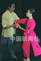 中央芭蕾舞團在三.八婦女節來臨之際,為北京的觀眾演出一九六四年創作的大型芭蕾舞劇《紅色娘子軍》,圖為常青指路一場戲。中新社記者 張勤 攝
