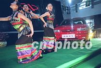 上海奇瑞汽車3日在北京國際博覽會上,用民族舞蹈詮釋國產家用轎車的魅力。已有12年歷史的北京國際博覽會首次展出家用汽車。中新社圖 鄭萍萍 攝