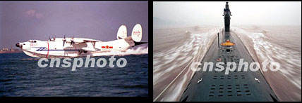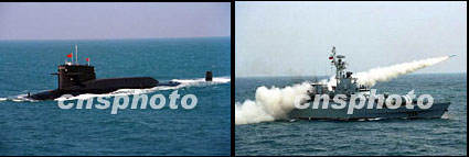 左為中國戰略核潛艇,右為導彈驅逐艦發射反艦導彈