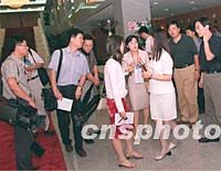 在北京的中外媒體記者三日下午在中國(guó)外經(jīng)貿(mào)部談判大樓采訪(fǎng)“中日貿(mào)易磨擦問(wèn)題正式磋商”。中新社記者 鄒憲 攝