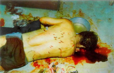 圖:練“法輪功”害人害己 2001年07月26日 20:15 ![]() 家住河北承德市桃李街的李亭受“法輪功”的欺騙,認為自己的父母是“惡魔”,他自己是“佛”。“佛”要把“惡魔”除掉,遂用尖刀將父母殺死。圖為被害者李亭之父。新華社發 馬健民,男,54歲,華北油田退休職工。其家人稱,馬已練習“法輪功”兩年左右,達到了癡迷的程度,時常出現精神恍惚和失常,堅持認為自己的腹部有個“法輪”。1998年9月4日馬健民在家中用剪刀剖腹尋找,因救治不及時死亡。這是馬健民自殺后的慘景。新華社發 |