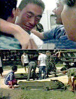 圖文:脫離虎口的中國人質王勝利親述生死瞬間 2001年08月22日 09:25 ![]() 中新網香港8月22日消息:據香港文匯報報道,21日下午兩點過后,脫離虎口的王勝利在中國駐菲律賓大使王春貴和武官張玉河大校的陪同下,乘坐插著中華人民共和國國旗的黑色轎車緩緩駛進中國大使館,受到等候已久佟曉玲參贊等使館館員的熱烈歡迎。 踏進使館等于回到了自己的家里。在使館休息廳里,菲律賓方面的醫生為王勝利檢查了身體。除了腳踝在逃跑時扭傷有些疼痛外,王勝利的身體和精神狀態都很好。由于飛機上沒有提供午餐,使館早已為王勝利準備好了午餐。經過一個多星期的驚嚇和磨難后,王勝利終于在使館狼吞虎咽起來。 王勝利以及張忠義和薛興在當地一名姓林的華人陪同下,于八月十二日前去營救先前被綁架的張忠強。但善良的他們被不守信用的綁匪扣押。綁匪打一槍換一個地方,他們每隔二三天搬一個地方。在變換地方的行軍中,綁匪用手鎗威脅他們老實一些。但在被綁的其它時間,綁匪對中國人質態度還不錯,有飯讓王勝利等人先吃,也不打罵他們,盡管領頭的綁匪有時對他們耍耍威風。 被綁的最初兩天,王勝利等人情緒非常低落,整天愁眉苦臉,唉聲嘆氣。每當想起只有九歲的女兒時,王勝利的腿都發抖。幾天后,他們開始接受并面對殘酷的現實,因為想得再多也是不管用。 十八日上午,他們的駐地突然響起密集的槍聲,綁匪和王勝利等中國人質嚇了一跳。原來四個班的政府軍接到線民的舉報后,前來圍剿綁匪和營救中國人質。政府軍同大約六十多名穆斯林綁匪打了起來。 中國人質本來商定好風雨同舟,要逃大家一起逃,而且往一個方向逃?墒峭蝗缙鋪淼臉屄曧懫鸷螅蠹冶灸艿爻藱C各奔東西南北。王勝利往山上的樹林里逃,張忠強和薛興往橡膠林里逃。王勝利在國內當過兵,經驗比較豐富。他逃出一段距離后,馬上一個魚躍跳進路邊的一個土坑,躲過了來往的子彈。在逃跑中,他把腳扭傷了,但幸運地被菲律賓軍方救出。 張忠強是于今年六月二十日在菲律賓南部北哥塔巴托省被綁架的。他和薛興逃出很遠一段距離后,被子彈擊中,當場倒在血泊中。由于綁匪熟悉當地地形,他們把張忠強的弟弟張忠義和姓林的華人作為盾牌邊戰邊逃。張忠義目前下落不明,但是肯定在綁匪手里。綁匪目前要求跟張忠義家屬進行談判,并呼吁政府軍減少對他們的軍事壓力。 穿著T恤衫的王勝利看上去非常消瘦,皮膚曬得黝黑。記者伸手歡迎他回到使館!澳憬衲甓啻竽昙o?”我問王勝利!叭龤q。”“老家在什么地方?”“浙江!薄澳悻F在最想做的是什么事情?”記者又問了這樣一個問題。王勝利除了對同伴的遇害感到傷心外,直言說:“回國看我女兒。我希望能帶她到杭州游玩。”(朱幸福) |