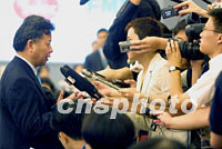 圖:金立群在第八屆APEC財長會議接受采訪 2001年09月06日 16:31 ![]() 第八屆APEC財政及央行副手會六日在中國江蘇省蘇州市舉行,中國財政部副部長、本屆會議主席金立群引起了許多記者的興趣,在會前被包圍采訪。中新社記者 李剛 攝 |