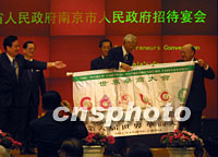 第六屆世界華商大會閉幕 會旗遞交馬來西亞 2001年09月19日 21:39 ![]() 全國工商聯主席經叔平十九日晚在第六屆世界華商大會閉幕式上致閉幕辭。中新社記者 史利 攝 ![]() 第六屆世界華商大會十九日晚在南京市圓滿閉幕,本屆大會組委會主席經叔平將大會會旗移交給下屆主辦者馬來西亞中華工商聯合會會長林源德(右)。中新社記者 史利 攝
