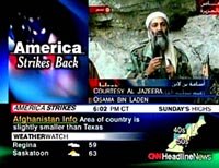 中新網北京10月8日消息:卡塔爾“半島”電視臺當地時間7日晚播放了被美國指控為“9·11”恐怖事件主要嫌疑人的本·拉登的講話。他在講話中稱,美國對阿富汗和他本人發動的軍事打擊是對伊斯蘭“宣戰”。他發誓不會讓美國得到安寧。 “半島”電視臺是在美國開始對阿富汗進行軍事打擊約1小時后播放這一講話的。本·拉登在講話中說,在巴勒斯坦人能夠享受安寧的生活和所有的美國士兵從阿拉伯半島撤出之前,他發誓不會讓美國和生活在美國的人得到安寧。 本·拉登對襲擊美國的恐怖事件大加贊賞,但他并未承認“9·11”恐怖事件是他領導的“基地”組織所為。 “半島”電視臺所播放的拉登講話的畫面背景是白天,這表明拉登的這一講話可能是事先錄制好,準備在美國開始對阿富汗的軍事打擊后播放。 |