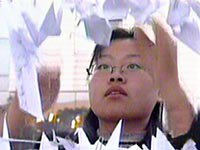 圖:東北大學女生悼念張學良校長 2001年10月17日 14:19 ![]() 中國東北大學一名女生十七日在校園里掛起潔白的千紙鶴,悼念日前逝世的前東北大學校長張學良。 |