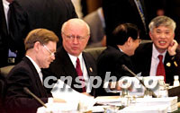 圖:美國(guó)和越南的代表在亞太經(jīng)合組織部長(zhǎng)級(jí)會(huì)議上 2001年10月17日 18:35 ![]() 10月17日,2001年亞太經(jīng)合組織(APEC)部長(zhǎng)級(jí)會(huì)議在上海國(guó)際會(huì)議中心開幕。這是美國(guó)和越南的代表在會(huì)前各自進(jìn)行交談。中新社圖 |