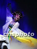 組圖:大型新編京劇《中國貴妃》在上海公演 2001年11月02日 18:42 ![]() 上海國際藝術節主打節目大型新編京劇《中國貴妃》十一月二日上演,它敘述了大唐天子李隆基與楊貴妃的凄美愛情。中國著名的京劇表演藝術大師梅蘭芳之子梅葆玖在劇中主演楊貴妃。中新社記者 潘索菲 攝 ![]() 大型京劇《中國貴妃》十一月二日在上海公演,其精湛的舞美和宮廷樂舞為新編京劇注入了別樣情趣。圖為貴妃霓裳羽衣舞。中新社記者 潘索菲 攝