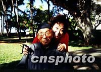張學良晚年最喜歡坐著輪椅出來“兜風”。圖為今年初他與侄女張閭蘅在室外留影。中新社圖(張閭蘅提供)