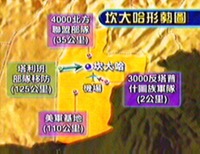 圖:坎大哈形勢圖 2001年12月03日 15:30 ![]() 美軍二日對塔利班大本營坎大哈附近機場進行了新一輪轟炸。隨著美軍和北方聯盟對坎大哈合圍形勢的形成,坎大哈的境遇更加岌岌可危。圖為日前坎大哈形勢圖。 |